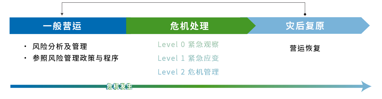 各营运单位负责识别与管理自身风险,确保能即时应对潜在挑战,并定期回报风险状况与因应措施。