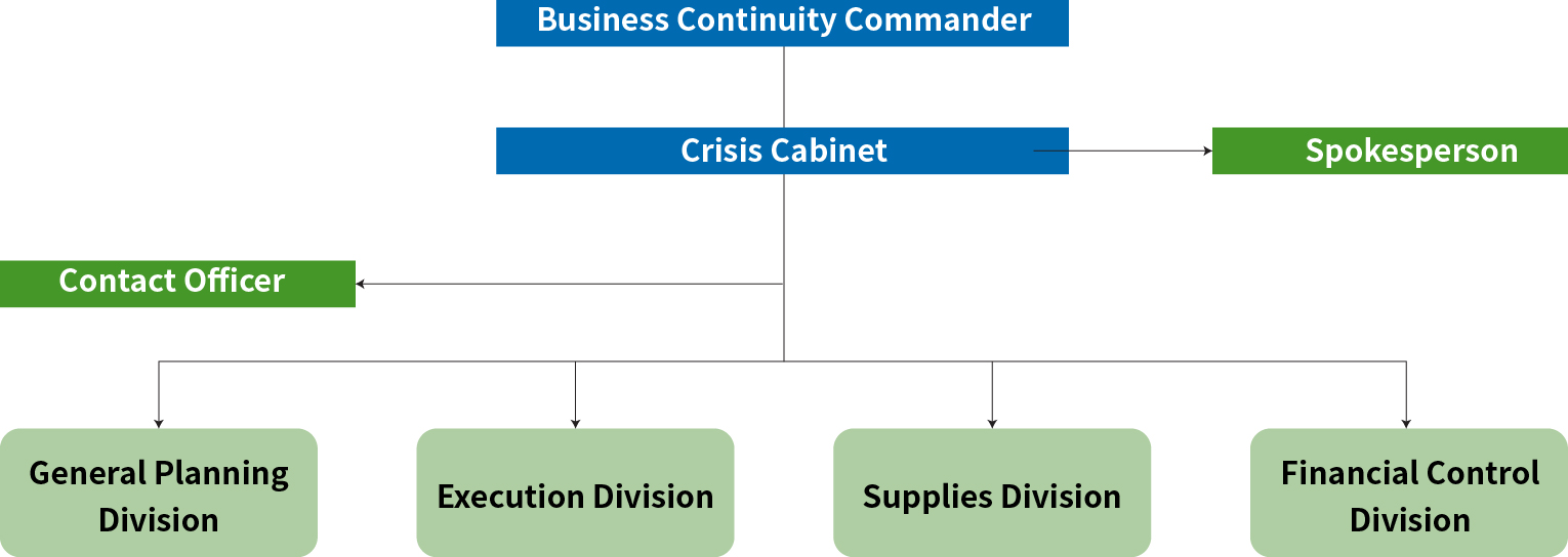 The Company established the Business Continuity Management Team, with the CEO and the chief executive of each site serving as heads and the senior executives of functional departments as members of the crisis management cabinet. The team is responsible for making strategic decisions and developing recovery plans to ensure timely responses and safeguard stakeholders’ interests and the Company's reputation in the event of operational interruptions.
